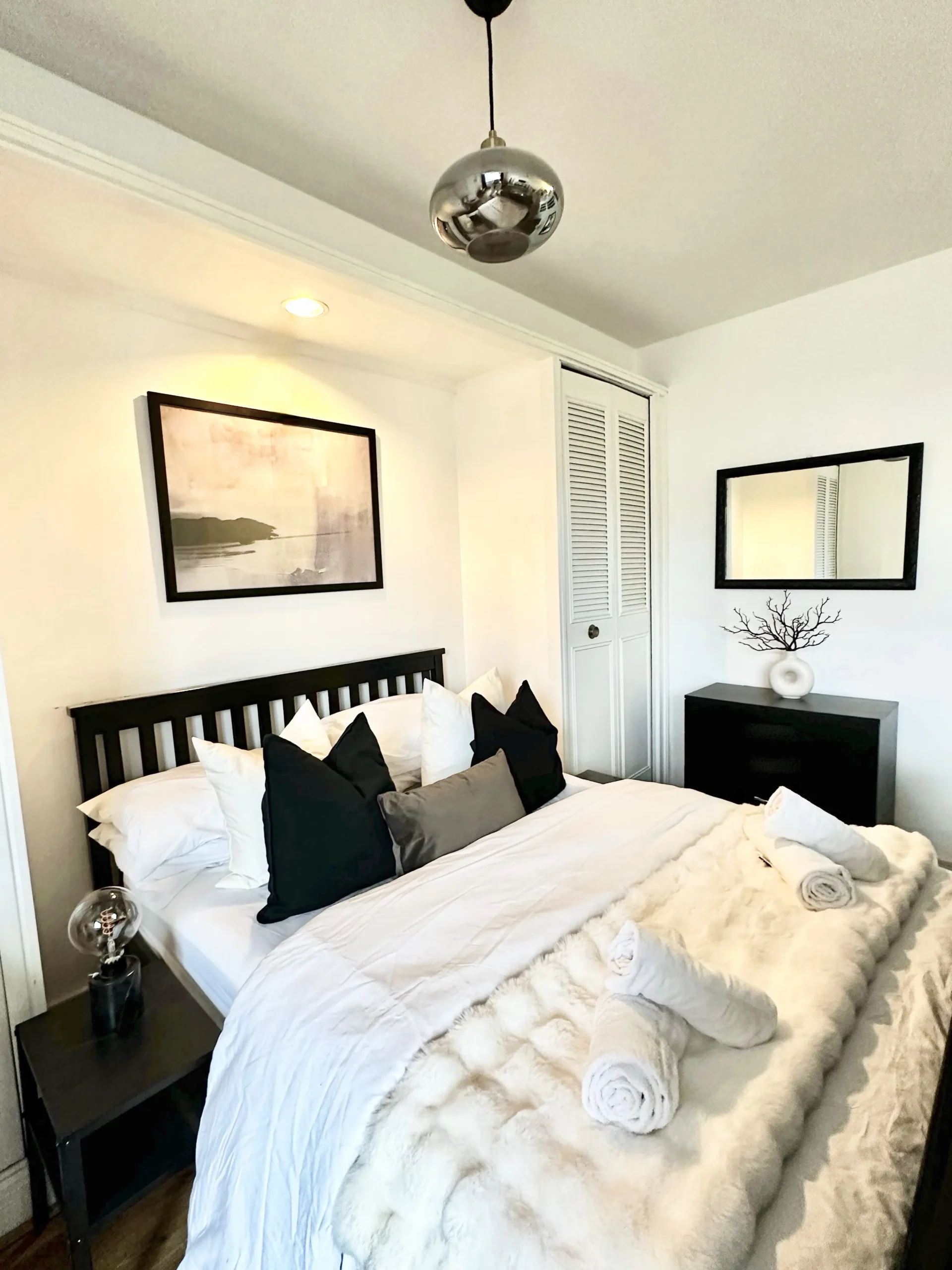 There is paid on-site parking with 24/7 security, which must be booked before check-in. On-street parking is paid but free after 7 pm on weekdays, after 1:30 pm on Saturdays, and all day on Sundays. Numerous nearby bus stops provide easy transportation options. The nearest underground station (Earl’s Court station) is just 4 minutes away, serving the District and Piccadilly lines. The nearest supermarket, Sainsbury’s, is only a 2-minute walk away and stays open until 11 pm.