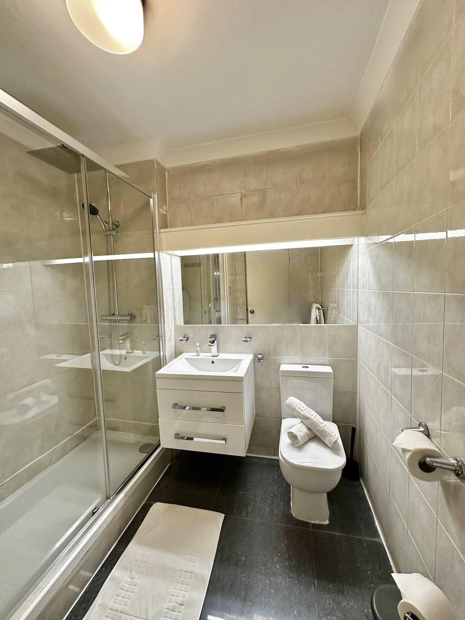 An apartment in the heart of London. A short walk to Harrods- Knightsbridge, South Kensington high street, Cromwell hospital, museums, and Olympia Exhibition Centre. Surrounded by shops, restaurants, cafes, and parks including Kensington Gardens and Hyde Park. Close to public transport. A fully equipped kitchen, WIFI, and security. A Smart TV with Netflix.