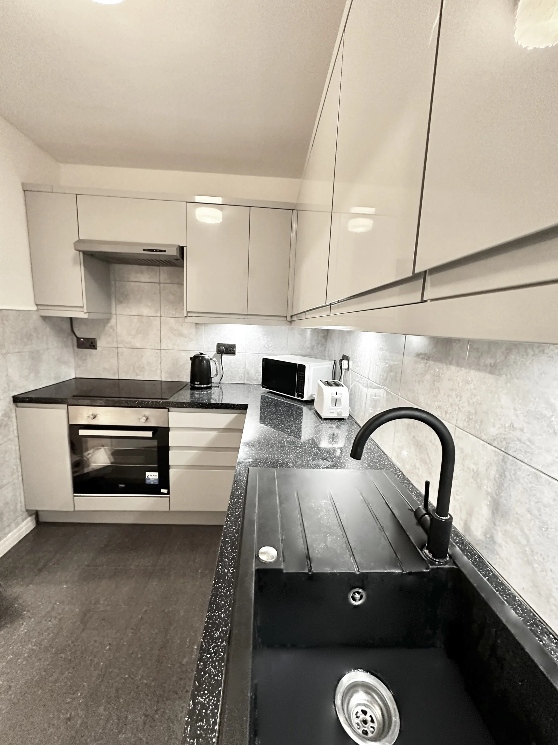 There is paid on-site parking with 24/7 security, which must be booked before check-in. On-street parking is paid but free after 7 pm on weekdays, after 1:30 pm on Saturday, and all day on Sunday. Numerous nearby bus stops are available. The nearest underground station (Earl’s Court station) is 4 mins away and services the District and Piccadilly lines. The nearest supermarket, Sainsbury’s, is only a 2-minute walk away and closes at 11 pm.